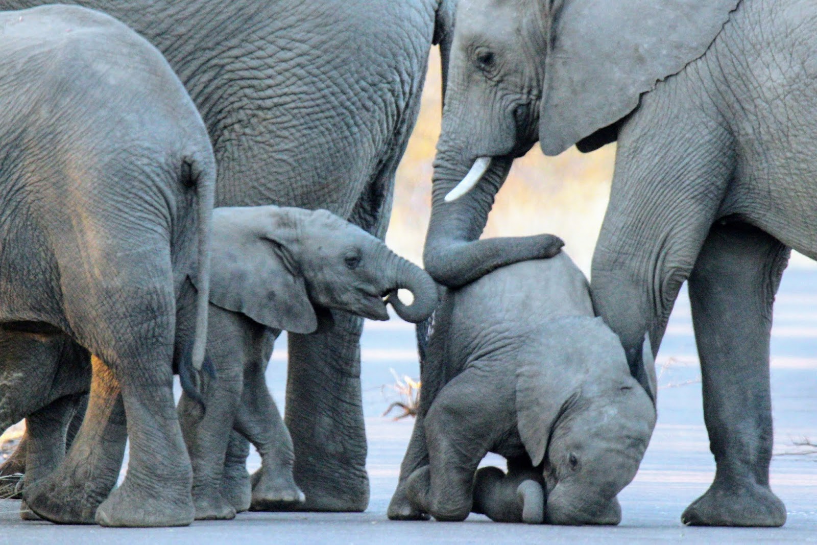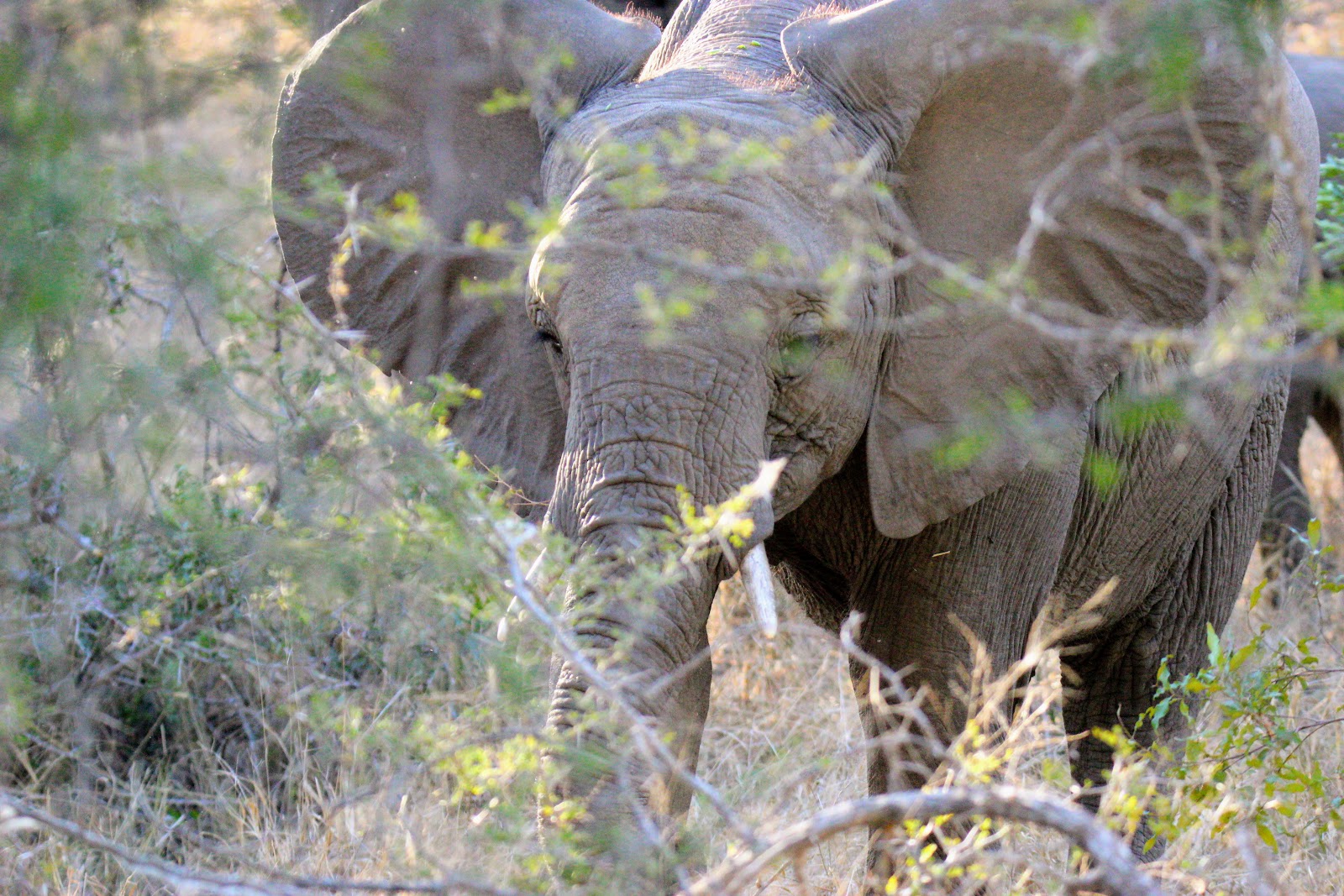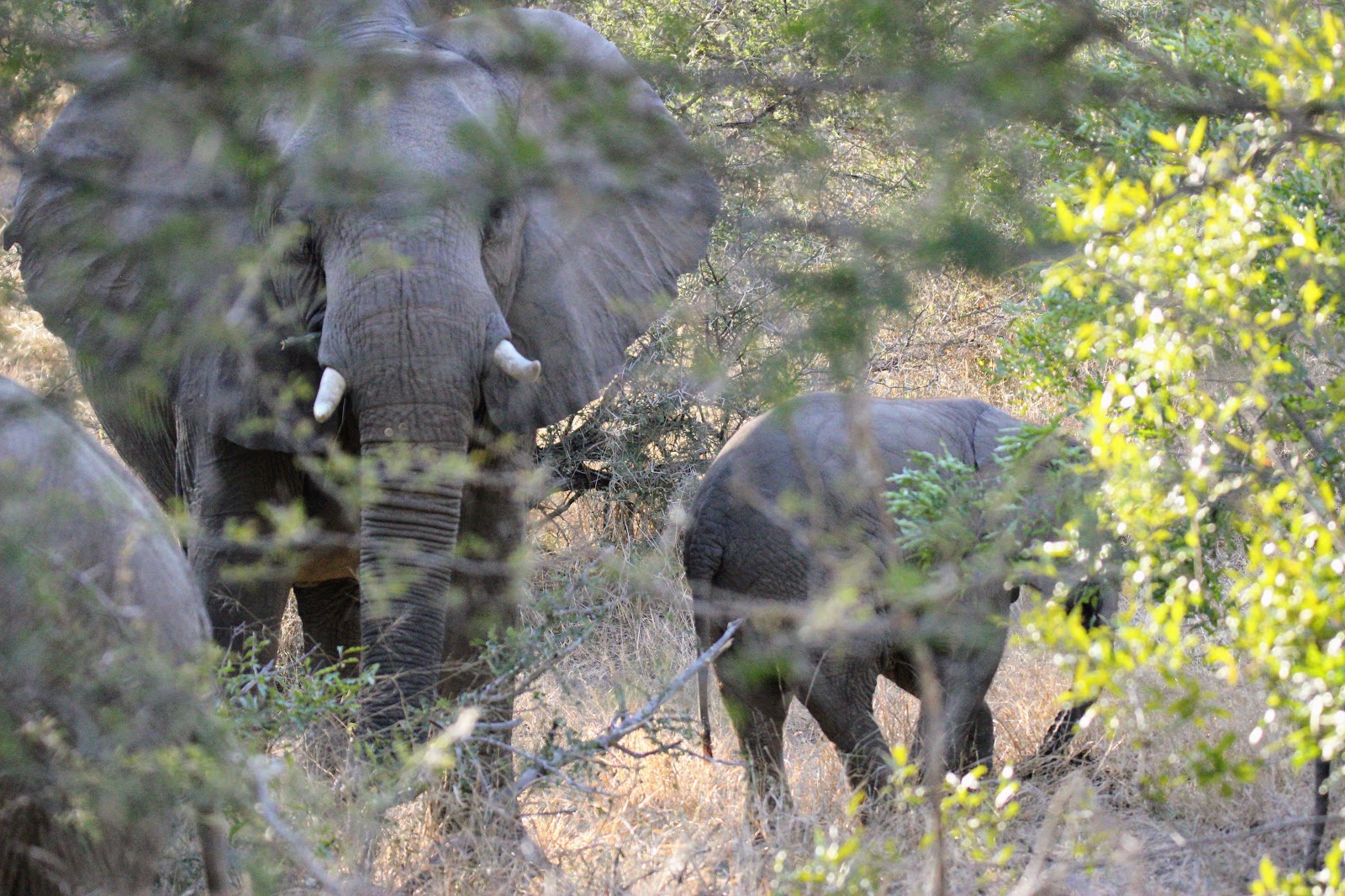 Ci ricolleghiamo alla strada principale e decidiamo di percorrere il Magangeni Loop, uno sterrato poco più avanti. Chiara, che è alla guida, mi chiede improvvisamente di leggere il piccolo opuscolo preso questa mattina alla reception che recita “Come osservare in sicurezza gli elefanti”, mi metto quindi a ricapitolare ad alta voce le regole principali che sono: fermarsi appena se ne vede uno, non spegnere la macchina, non avvicinarsi, non trovarsi mai e poi mai in mezzo alla mandria, aspettare che attraversino tutti, soprattutto se ci sono dei cuccioli e…. Chiara, attenzione: elefanti!