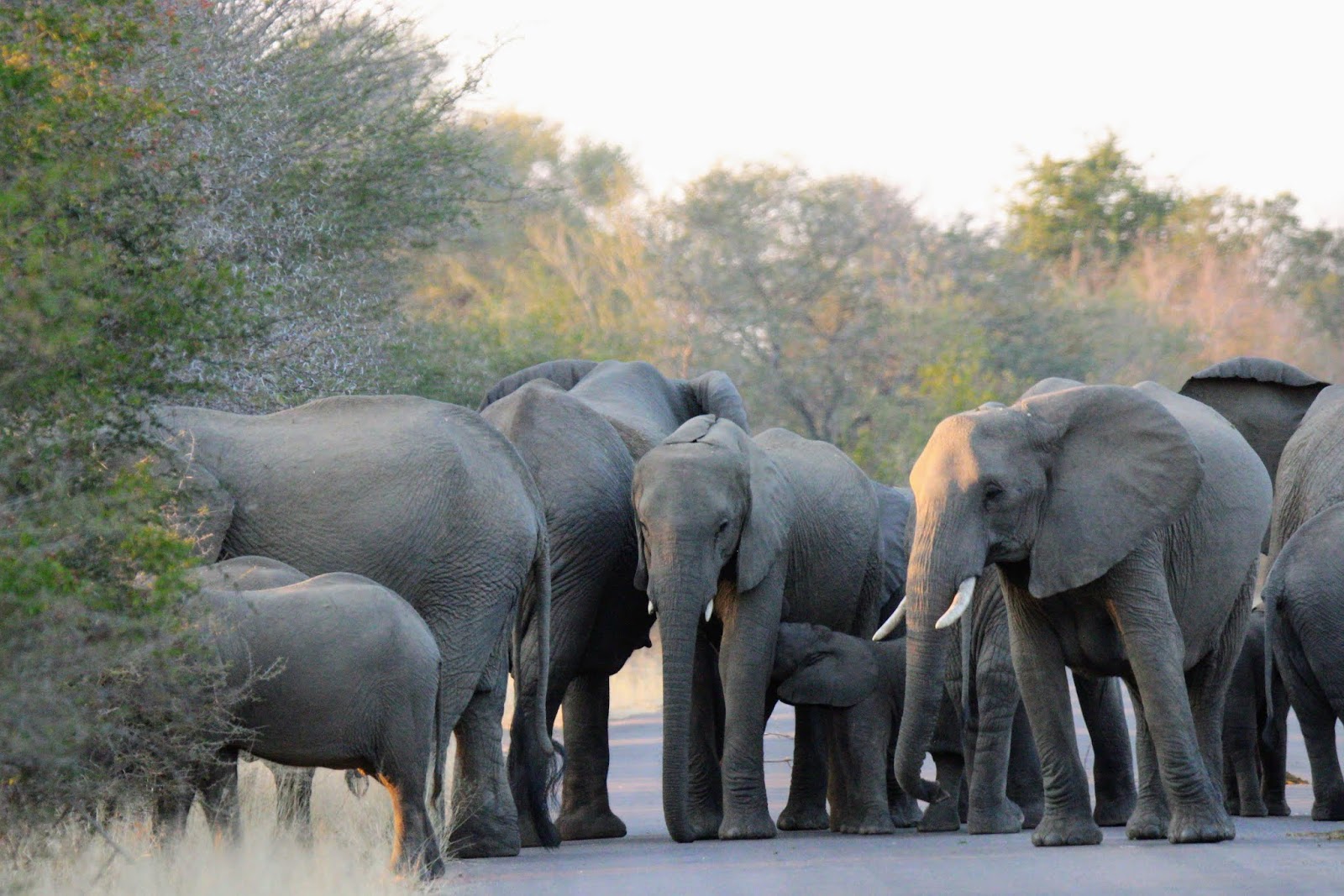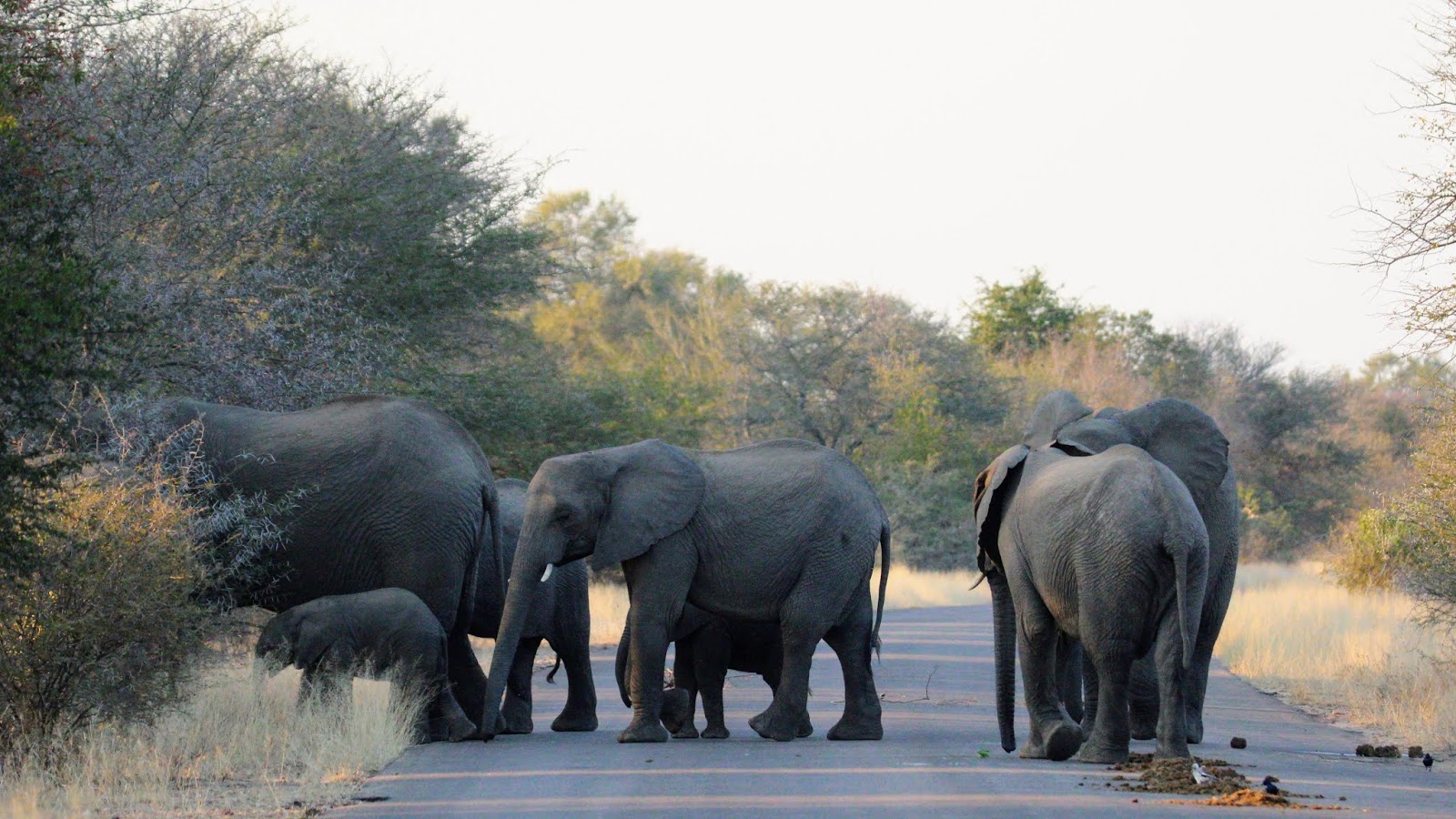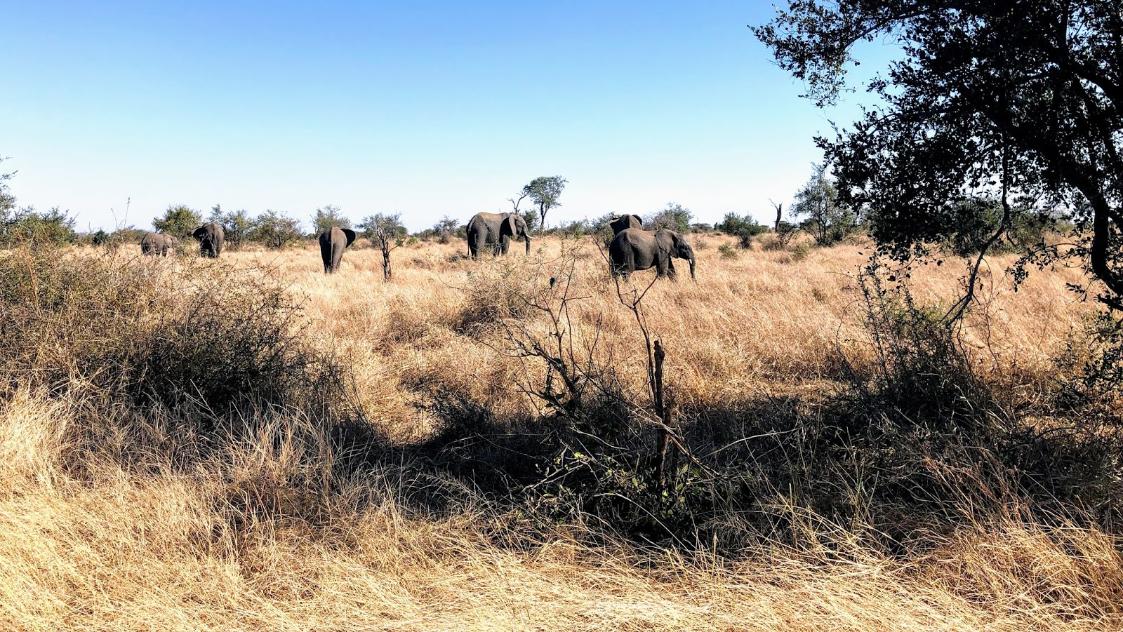 Decidiamo di percorrere verso nord l’asfaltata H-10 fino all’incrocio con la H1-2 che ci riporterà verso Skukuza. La H-10 è una strada spettacolare, soprattutto nell’ultimo tratto dove attraversa ampie distese di savana intervallate dal cosiddetto Lebombo Mountain bushveld. Qui osserviamo diverse specie di uccelli mai avvistati prima, tra cui alcuni rapaci, elefanti e una bellissima famiglia di kudu con i piccoli.