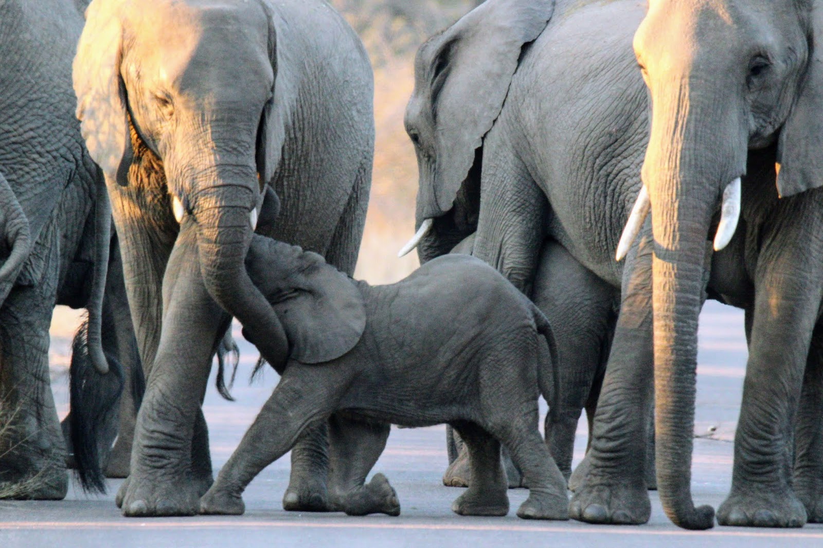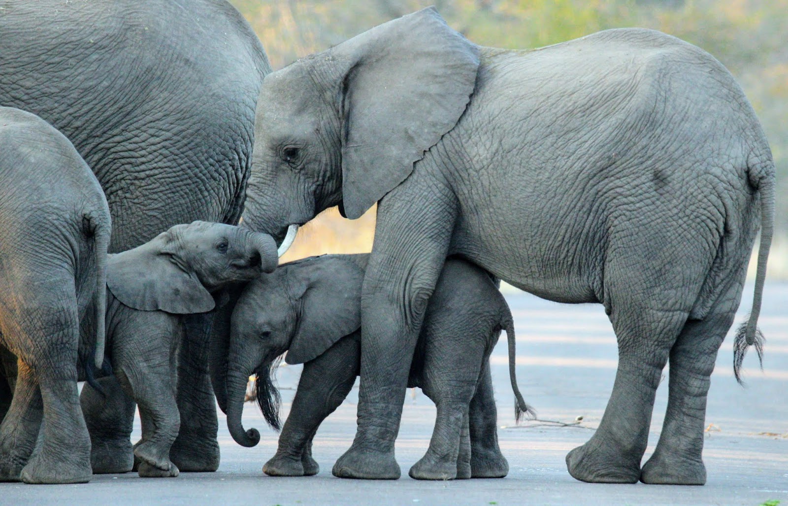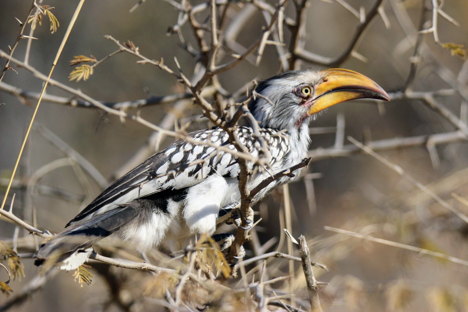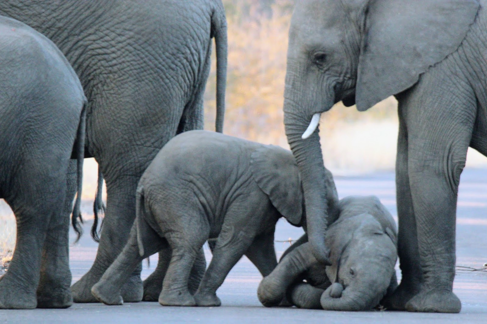 Decidiamo di percorrere verso nord l’asfaltata H-10 fino all’incrocio con la H1-2 che ci riporterà verso Skukuza. La H-10 è una strada spettacolare, soprattutto nell’ultimo tratto dove attraversa ampie distese di savana intervallate dal cosiddetto Lebombo Mountain bushveld. Qui osserviamo diverse specie di uccelli mai avvistati prima, tra cui alcuni rapaci, elefanti e una bellissima famiglia di kudu con i piccoli.