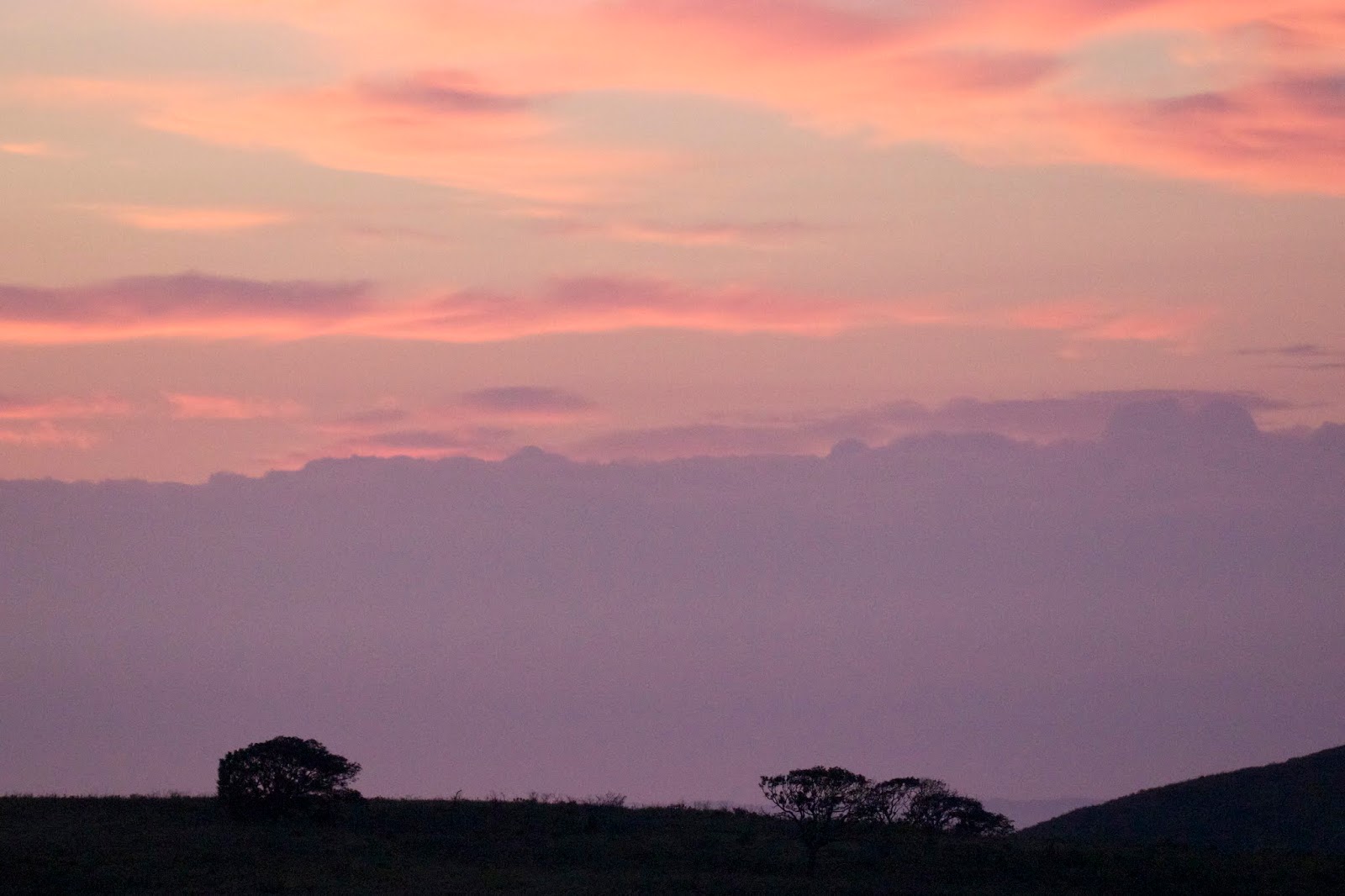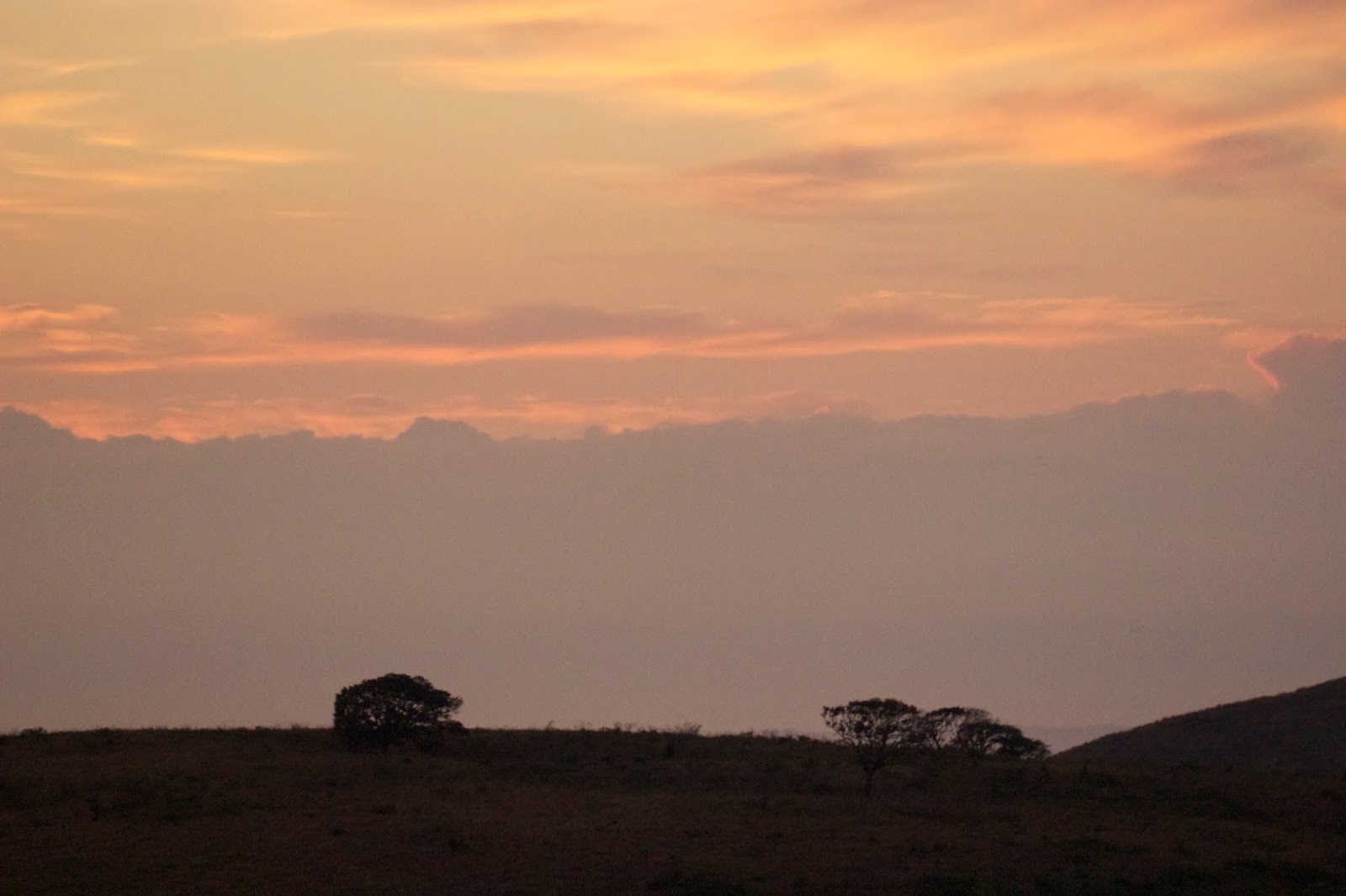 Ci alziamo quindi intorno alle ore 6.00, ben prima della sveglia. Nonostante tutto ci sentiamo riposate perché la sera prima alle 21 stavamo già dormendo! Scostando le tende della portafinestra che dà sul balcone ci accorgiamo dello spettacolo meraviglioso che il sole sta preparando per noi, indossiamo velocemente pile e giacca e usciamo sul terrazzino che affaccia sulle meravigliose colline dell’Hluhluwe. Il sole sta facendo capolino e ci godiamo la nostra prima alba africana che incendia il cielo e l’orizzonte tanto quanto il tramonto del giorno prima.