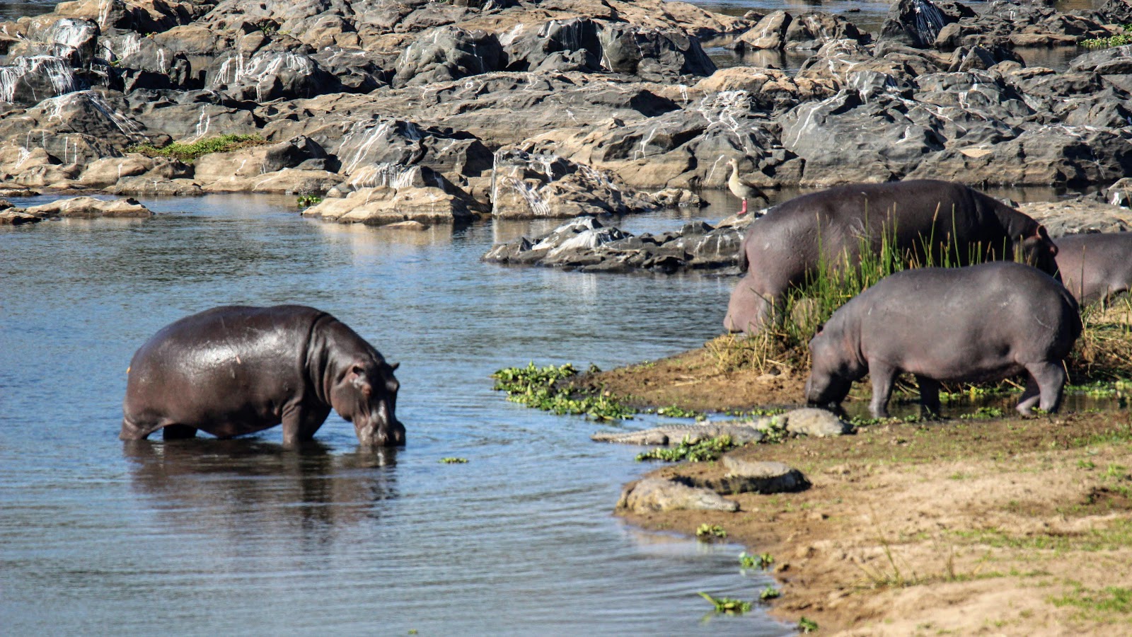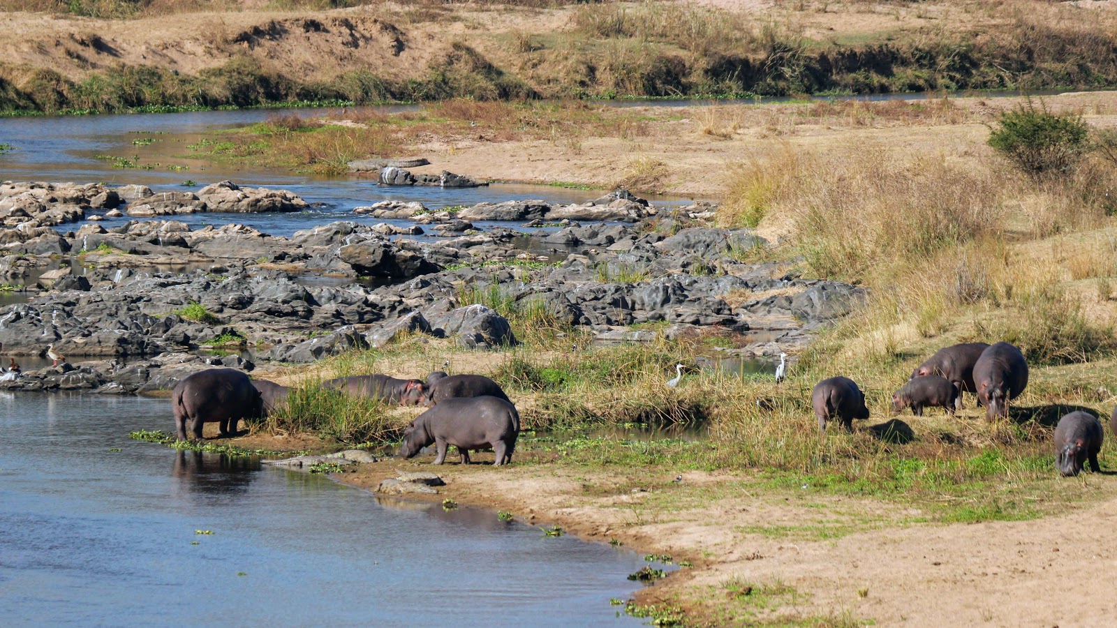 Felicissime, dopo almeno quaranta minuti, ripartiamo direzione Lower Sabie Rest Camp dove sostiamo in un posticino all'ombra e andiamo a mangiarci un gelato rinfrescante sulla terrazza del fiume con vista… ippopotami spiaggiati! Acquistiamo anche una mappa dettagliata del parco che riporta delle belle illustrazioni della fauna e avifauna tipiche del Kruger. Saltiamo l’ora più calda della giornata che oggi è estremizzata dalla presenza di un vento bollente, riprendendo l’esplorazione verso le 14:00, dopo aver fatto il pieno di benzina.