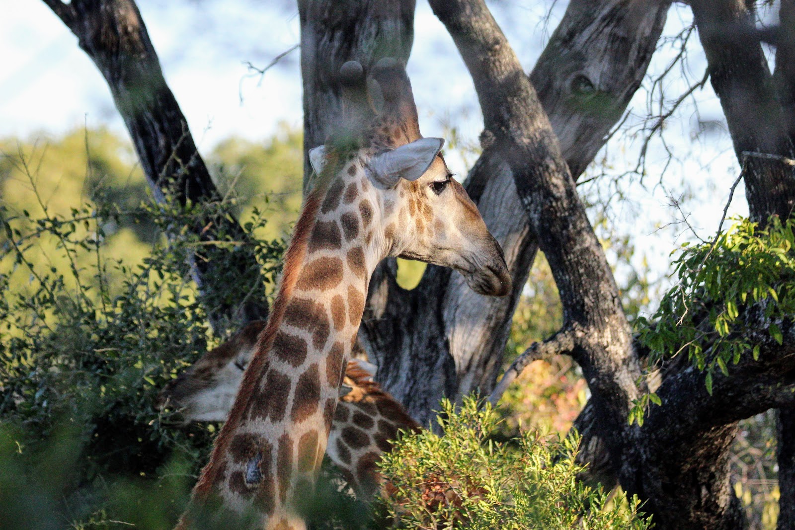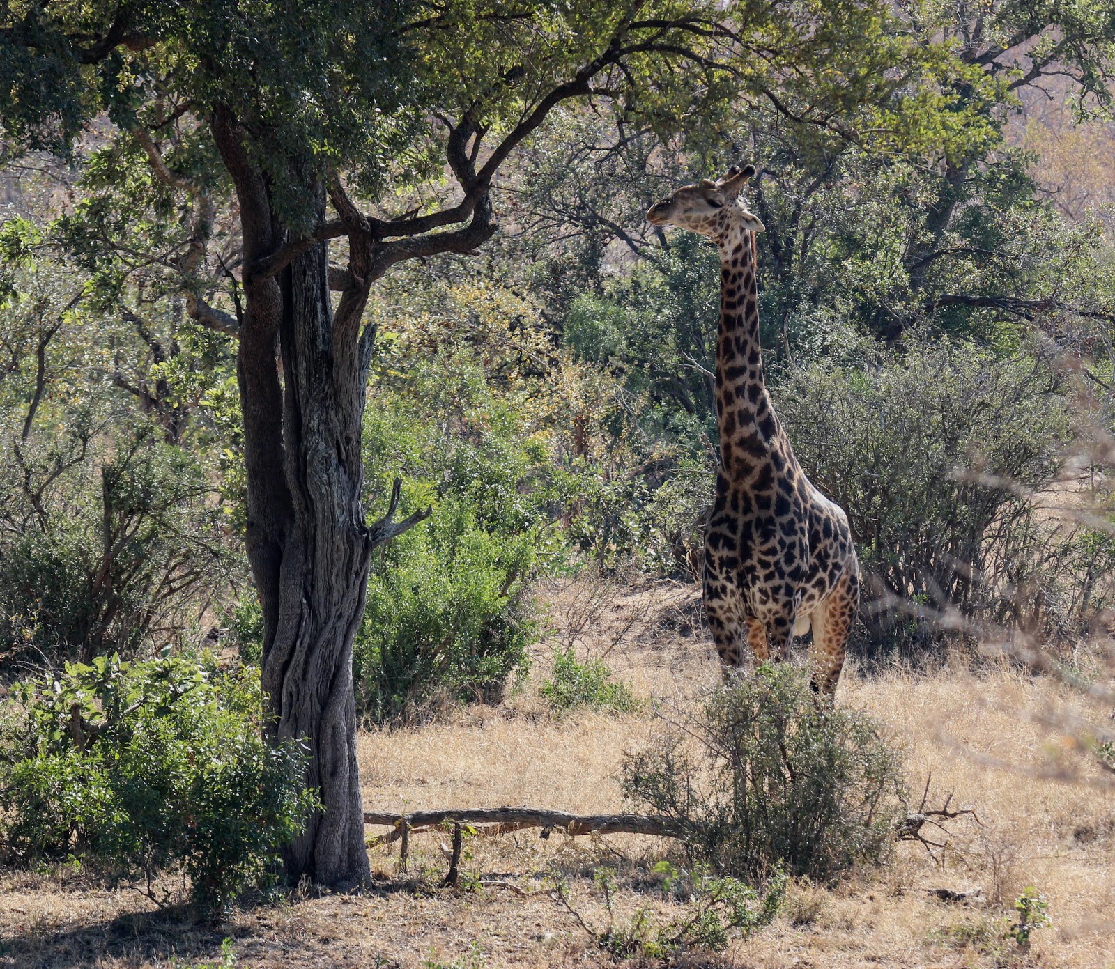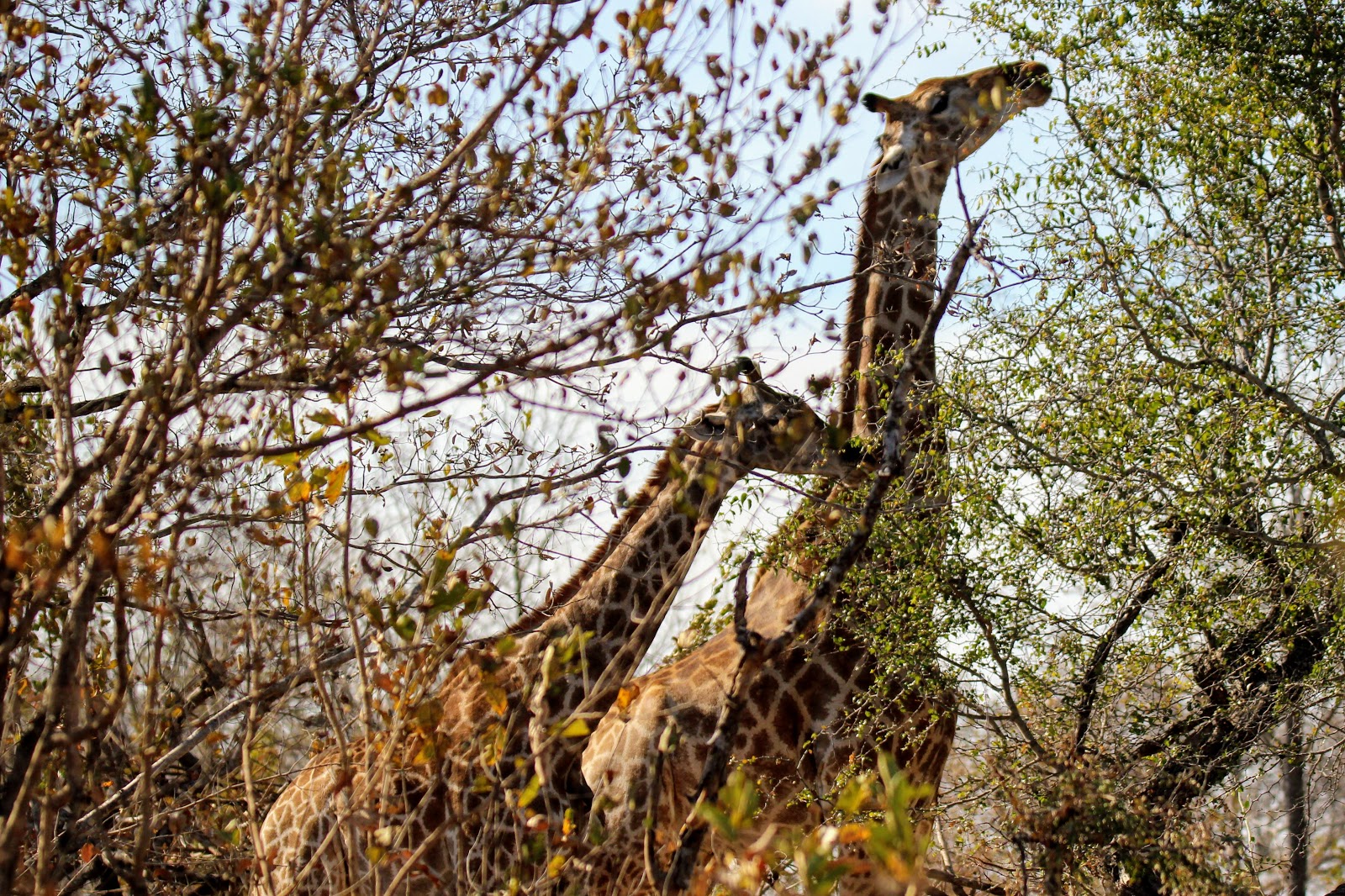 Proseguiamo sul loop incrociando poco dopo un piccolo van che scorrazza sparato, lo affianchiamo e gli diciamo degli elefanti, intimandogli di usare cautela. Più avanti facciamo ancora in tempo ad avvistare tre giraffe intente a mangiare, i loro movimenti lenti e il loro incedere dinoccolato ci rasserena dopo l’esperienza un po’ troppo wild appena vissuta e riusciamo a fare loro dei bellissimi primi piani.