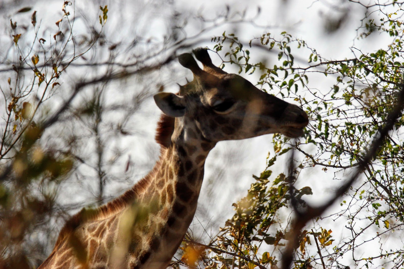 Riprendiamo l’esplorazione della riserva con Sibusiso che si infila in strette strade sterrate, cerco di visualizzare mentalmente il percorso ma finisco per perdere completamente l’orientamento. Arriviamo infine vicinissimi ad un gruppo di tre altissime giraffe intente a brucare i rami più teneri di una pianta di mopane e nel frattempo incrociamo l’altra jeep carica del gruppo di avi-fotografi professionisti. Sibusiso e l’altra guida si scambiano rapide informazioni in swazi ma purtroppo anche loro non stanno riuscendo ad avvistare i rinoceronti.