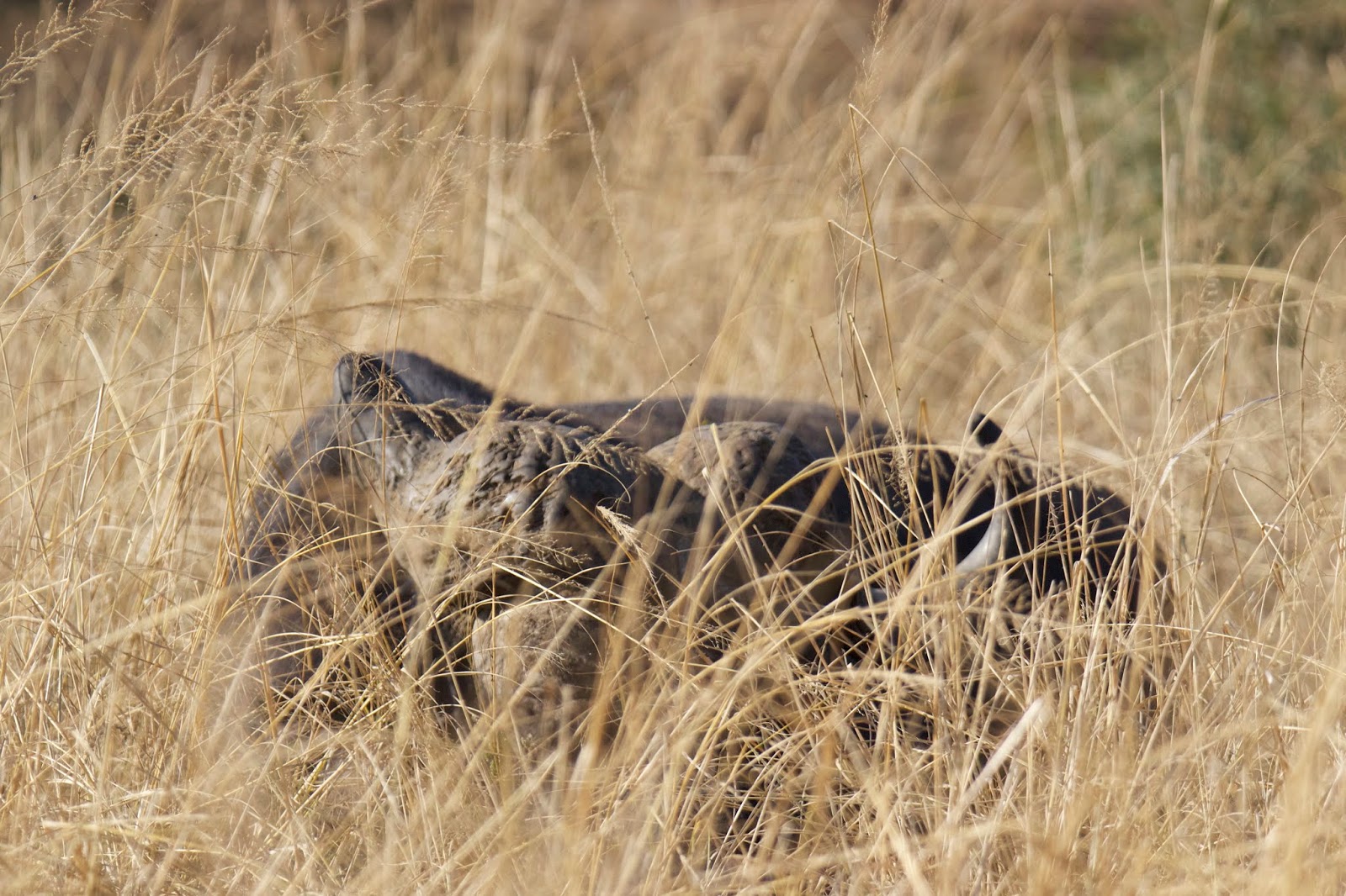 Ristorate dalla colazione ci rimettiamo in marcia con l’intenzione di percorrere la S28, la Nhlowa Road, che attraversa una zona di aperta savana caratterizzata da immensi spazi aperti e poca vegetazione. La strada è sterrata ma in buone condizioni, la percorriamo a basse velocità sperando di avvistare dei movimenti nell’erba alta ma di felini neanche l’ombra anche se, in particolare lungo i letti asciutti di qualche torrente minore che taglia la strada, troviamo tracce di carcasse di animali.