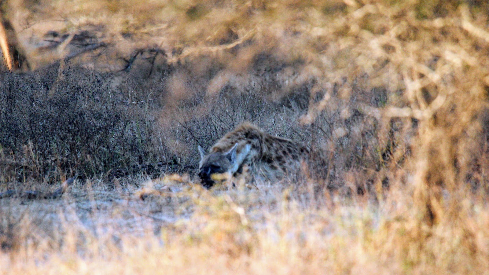 Mi sveglio che è ancora buio ma ora distinguo chiaramente i rumori e suoni del bush che inizia ad animarsi. Mi alzo scostando il pesante piumone: la carbonella sul fondo del letto è ancora calda! Mentre vado in bagno sento uno scricchiolio di passi, o meglio, di zampe. Ho solo il cellulare con me, lo uso come torcia ma riesco ad illuminare pochissimo oltre la bassa parete in pietra. Vedo solo i contorni degli arbusti ma sono sicura che c’è qualcosa lì fuori che si avvicina salvo poi trotterellare via quando punto la torcia del cellulare nel tentativo di capire cos’è. Sto qualche minuto in attesa e ad un certo punto mi sembra proprio di distinguere una lieve gobba e un collo proteso in avanti che si allontana. Ma è il colore del mantello a sorprendermi: maculato! Sono quasi certa di aver visto una iena!